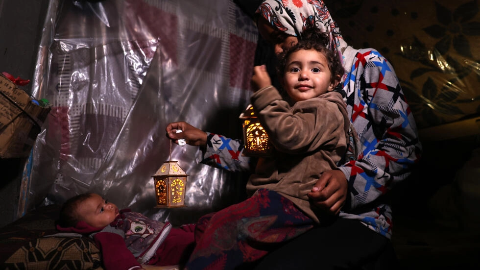 رمضان “حزين (…) لكننا نحاول أن نصنع الفرح لأطفالنا” كما تقول نيفين السكسك النازحة من جباليا الى رفح بجنوب قطاع غزة والتي لا تملك أي شيء لإعداد أول إفطار في شهر يحييه المسلمون عادة بالعبادة والزينة وموائد الأطعمة الشهية في أجواء من البهجة.